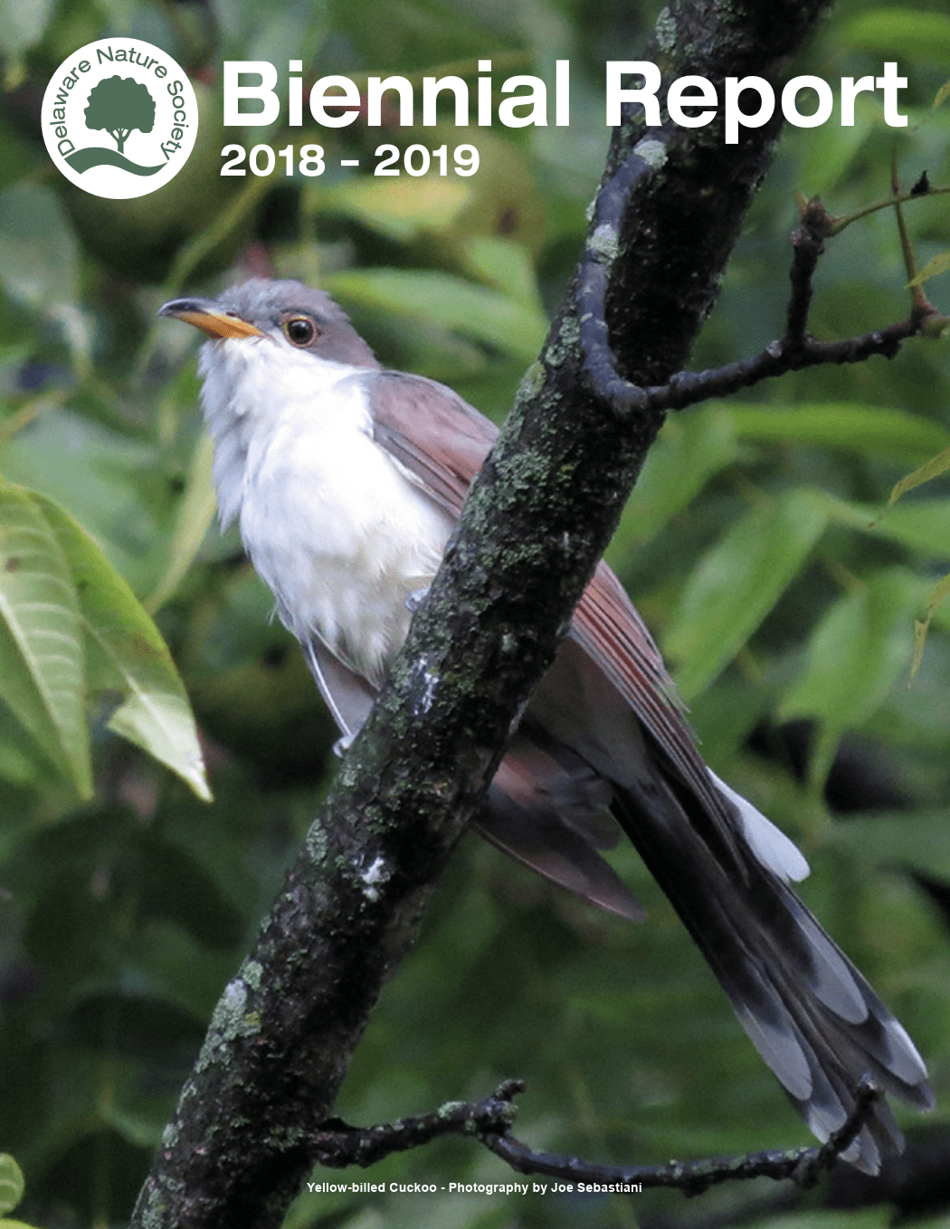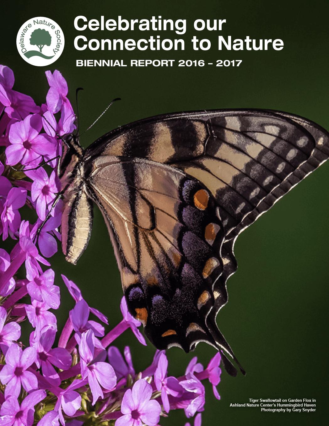 Home / About / News, Stories & Press Releases / DelNature’s Annual Reports DelNature’s Annual Reports Delaware Nature Society’s Annual Reports share the inspiring growth, change, and milestone achievements for the past year with deep dive stories and beautiful nature photography. Annual Report2024 Annual Report2023 Annual Report2022 Biennial Report2020-2021 Biennial Report2018-2019 Biennial Report2016-2017