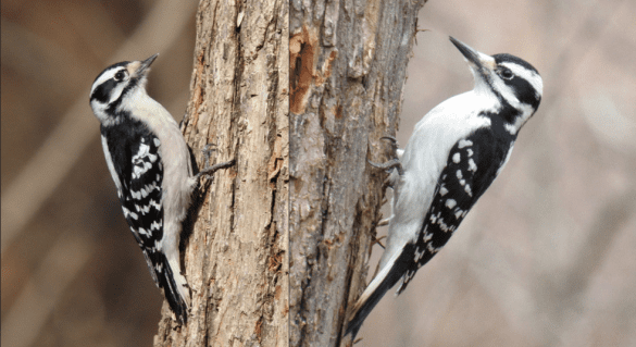 Delaware hosts 7 species of woodpecker, most of which are striking, colorful birds that are quite easy to identify. However, there are two very similar species that continue to befuddle birdwatchers: the Downy Woodpecker and the Hairy Woodpecker. Although the Downy may just look like a smaller version of the Hairy they are not particularly closely related and are now placed in a different genus (Downy = Dryobates pubescens, Hairy = Leuconotopicus villosus).