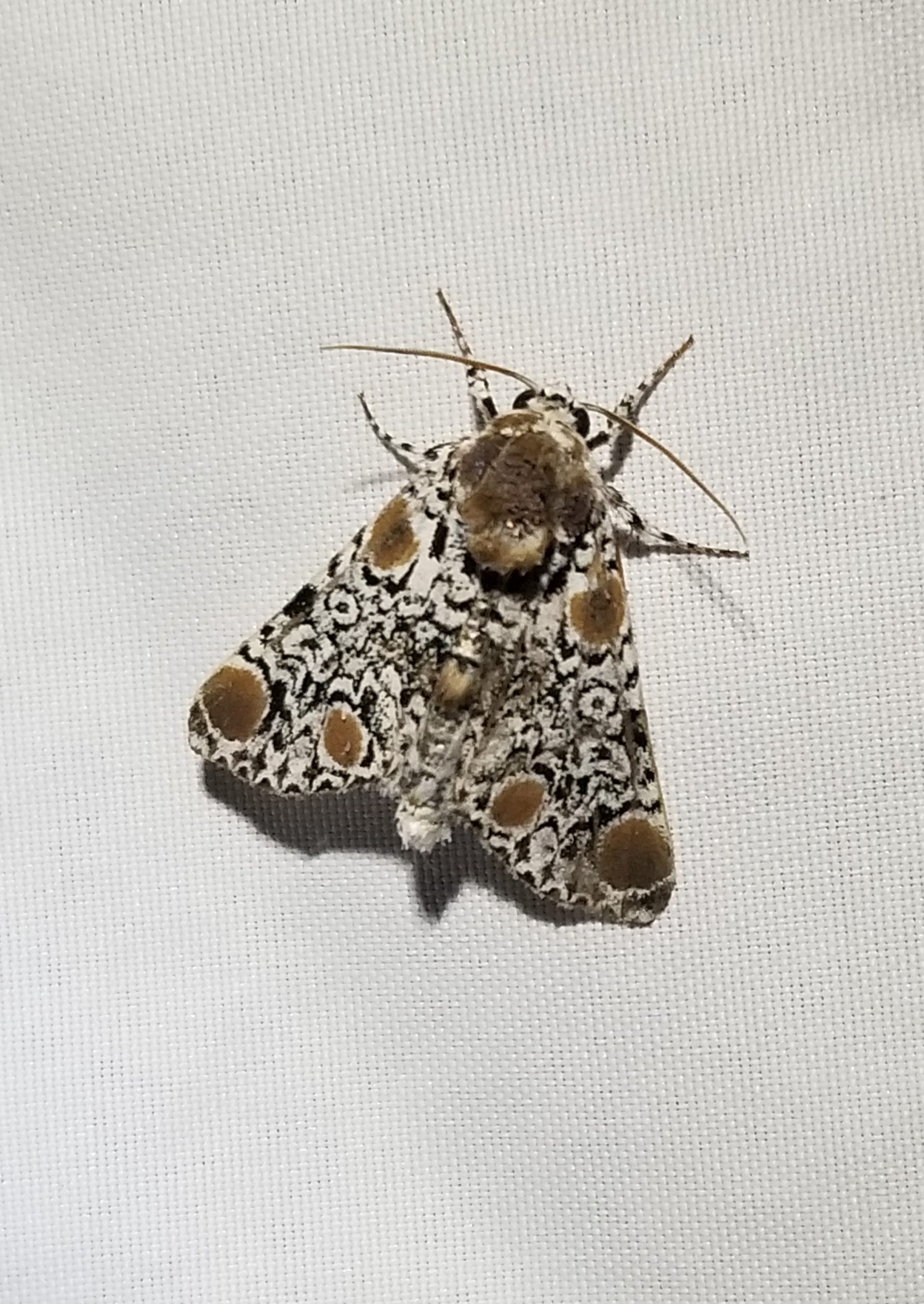 By walking slowly and looking on buildings or tree trunks, you might see moths hiding during the day. Many of these species are cryptically patterned, relying on camouflage to escape predation. If you look closely, you might see some of these.